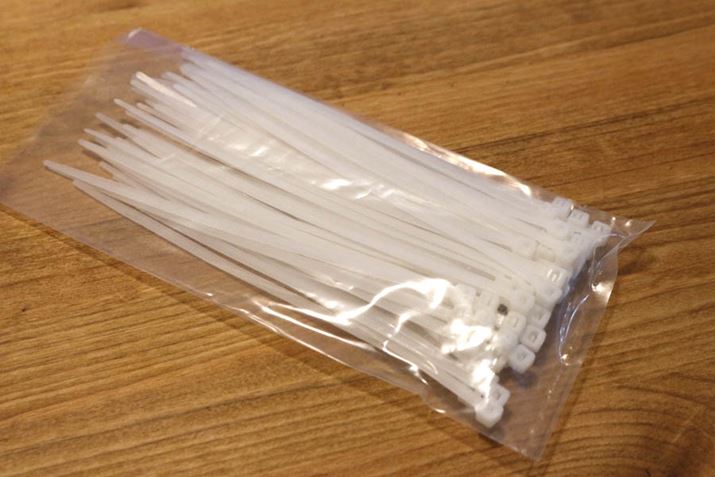 結束バンドは30本入りが110円で手に入りました。今回は使い捨てタイプを選びましたが、繰り返し使用できるものもあります