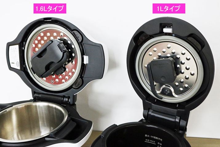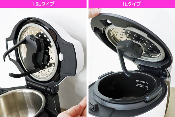 また、既存モデル(1.6L/2.4Lタイプ)は、かき混ぜが必要なタイミングでアームが開く仕様でしたが、1Lタイプはフタを閉じると同時にアームが開きます