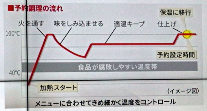 ちなみに、予約調理は最初に食材を加熱した後、腐敗しにくい温度帯でキープし、予約設定時間前に仕上げるというプログラムになっているので、食材が傷む心配もありません。最大予約設定時間は15時間