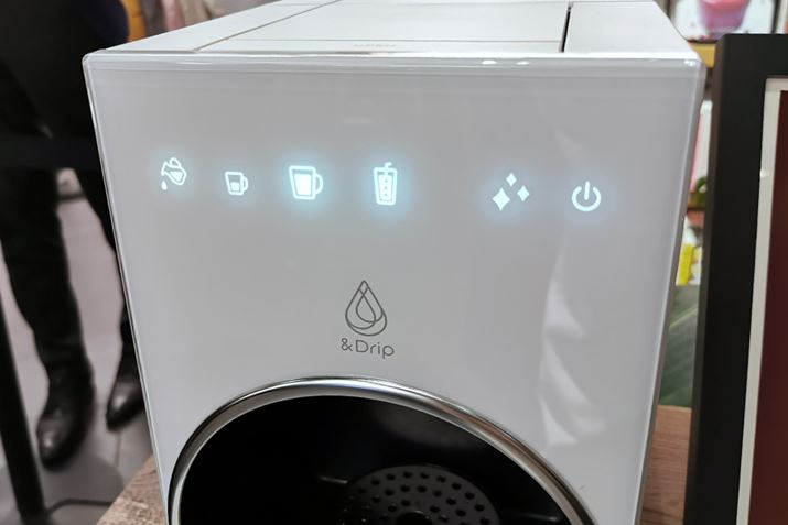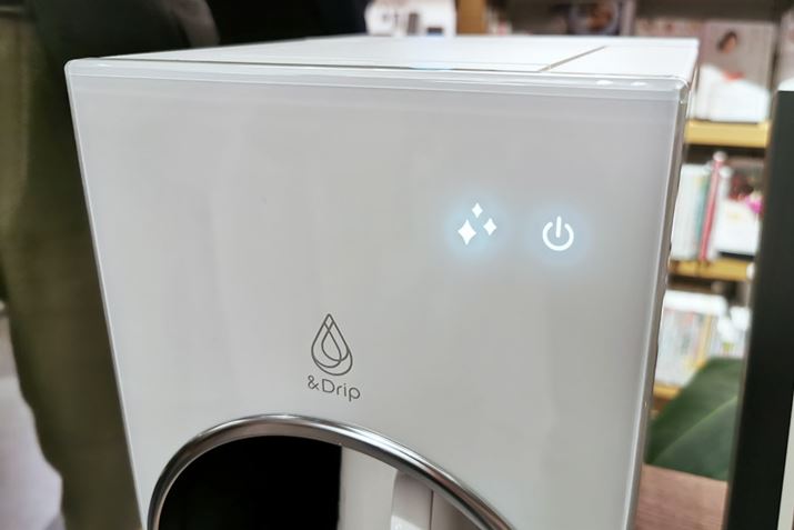 お手入れが楽なのも、「&Drip」の特徴。「洗浄ボタン」を押すだけで、水タンクに入っている水を使用して抽出システムを洗浄してくれます。お手入れモードが搭載されていても、抽出口などは取り外して水洗いしなければならない製品も多いですが、「&Drip」は本当に「洗浄ボタン」を押すだけでOKなのだそう。