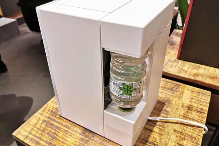 水タンクを取り外し、500mlのペットボトルをそのまま設置することも可能。より衛生的かつ手軽に使用できます