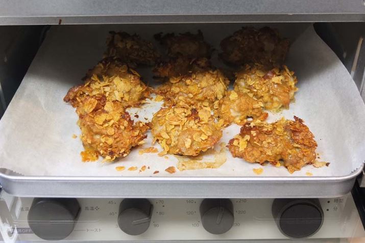 今回は付属のレシピブックに掲載の「クリスピーからあげ」を作ってみました。衣に細かく砕いたコーフンレーンを使った“油を使わない唐揚げ”です。