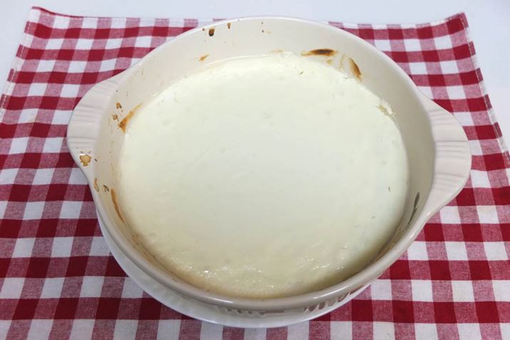 できあがったヨーグルトに砂糖を加え、グラタン皿に入れて「焼きヨーグルト」を作ってみました。「高温コンベクション」モードでの230℃/20分で焼きましたが、グラタン皿の端の部分の木綿豆腐のような食感と、真ん中のとろりとしたなめらかな食感のコントラストがよかったです。お客様に出せるスイーツとしてもバッチリの完成度でした