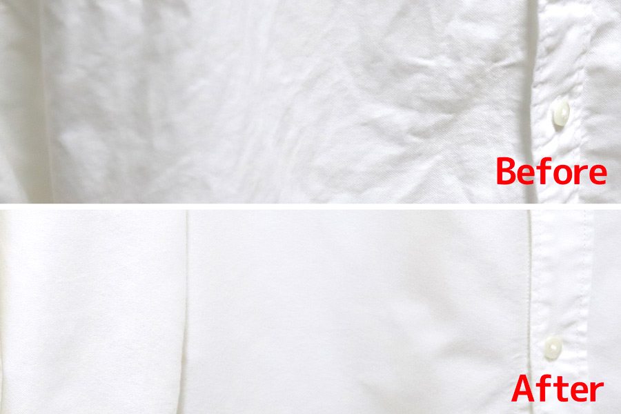 僕はユニクロの「オックスフォードシャツ」の肌触りが好きで、何枚か着回しているんですが、あれ、厚手なこともあって洗濯ジワがなかなか取れない……。毎回げんなりしながらアイロンをかけていたんですが、もうこれでエエやんって感じです。