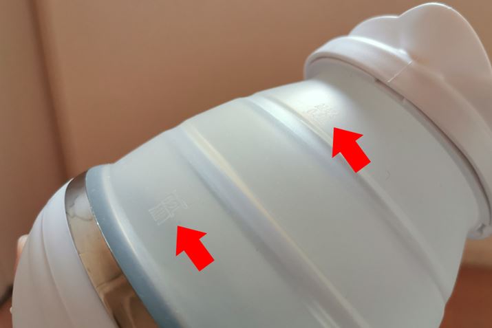 シリコン部表面には水量線がついているのですが、ほとんど見えません。シリコンが浮き上がったようになっているだけなので、触って場所を確かめて、光の当たり方を変えながらよーく見ると見つけられるというレベル。よって実用的ではありません