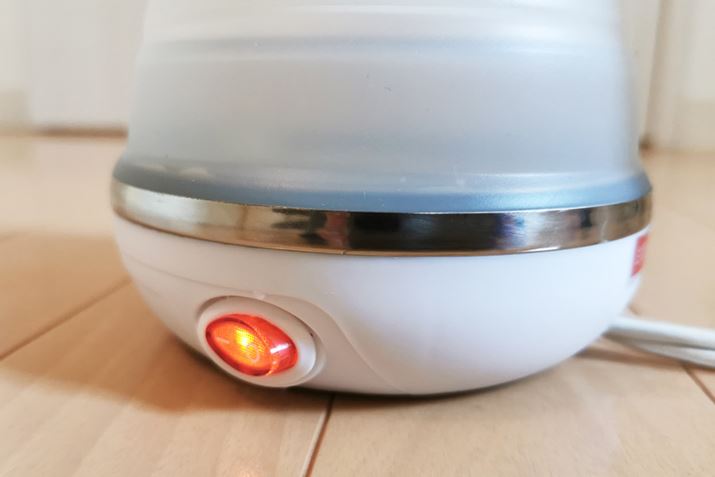 多くの電気ケトル同様、沸騰を知らせるアラームはなく、沸騰すると加熱ヒーターがOFFになります。冷めると自動で再沸騰する保温機能を搭載しているので、再沸騰させたくない場合は、電源ボタンを切るのを忘れないように