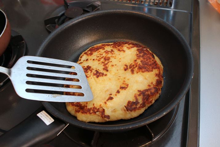 これを、最後にフライパンで焼くのがポイント。もちブレンダーにかけたあとだから火は通っているので、表面をカリッとさせるだけでOK