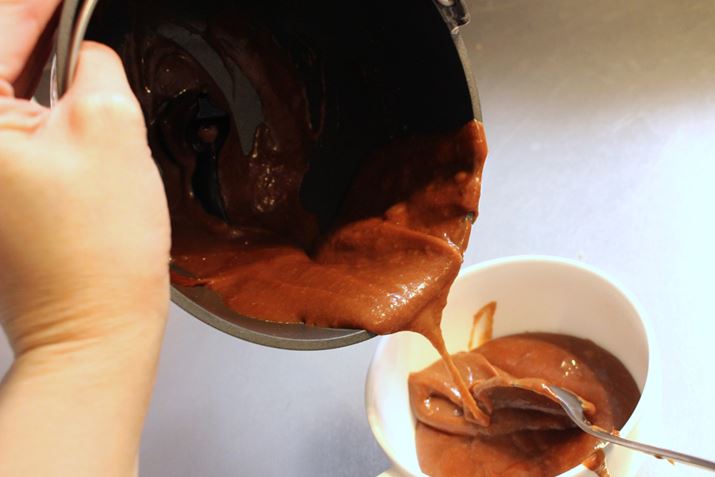 できあがったチョコレートソースは、サラサラではなくトロトロ! 餅っぽさが生きているのがわかります