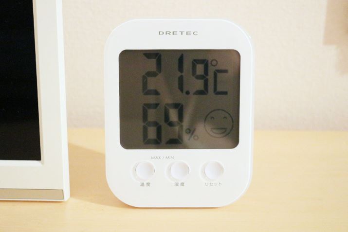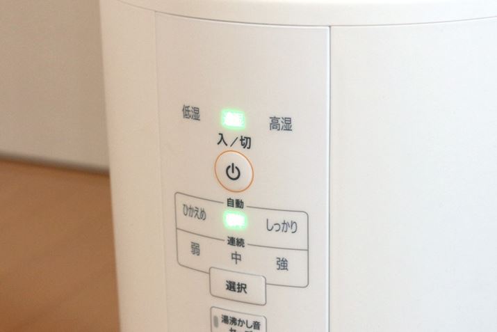 筆者宅の場合、設定を「しっかり」のままにしていると湿度が上がり続けるようなので、湿度が60%に達したら、「ひかえめ」に切り替えるようにしていました。こうすることで、60%前後の湿度をキープできていました