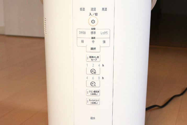 タンクを冷たい水で満水にしてしまうと、加湿開始までやや時間はかかるものの、加湿力・スピードともに十分で、場合によっては加湿されすぎることもあるくらいでした。湿度センサーの精度があまり高くないのか(?)、モードを「しっかり」のままにしていたら、湿度が80%を超えている! なんてことも。就寝中に使用する場合は、ある程度湿度を適正に近づけておき、「弱」もしくは「ひかえめ」に設定を変更して寝たほうがよさそうです。