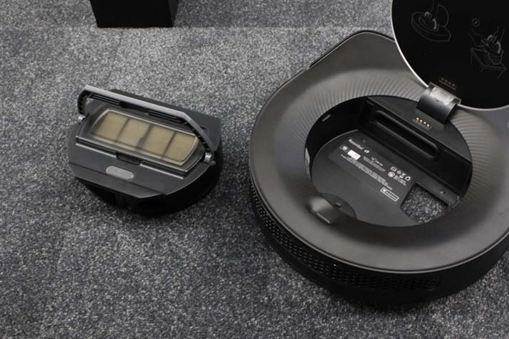 s9+には、従来モデル「i7+」と同じ、紙パック式のダストステーションを搭載した充電台「クリーンベース」が付属します。掃除が完了してルンバが充電台に戻ると、本体のダストボックスに溜まったゴミを、クリーンベース内の紙パックに自動で排出する機能に対応。ゴミ捨ての手間が省けるのはうれしいですね。