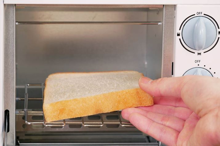 トースターに食パンをセットして、タイマーを5分に設定。タイマーを5分以下に設定する場合は、一度「6」以上に回してから戻すようにしてセットする