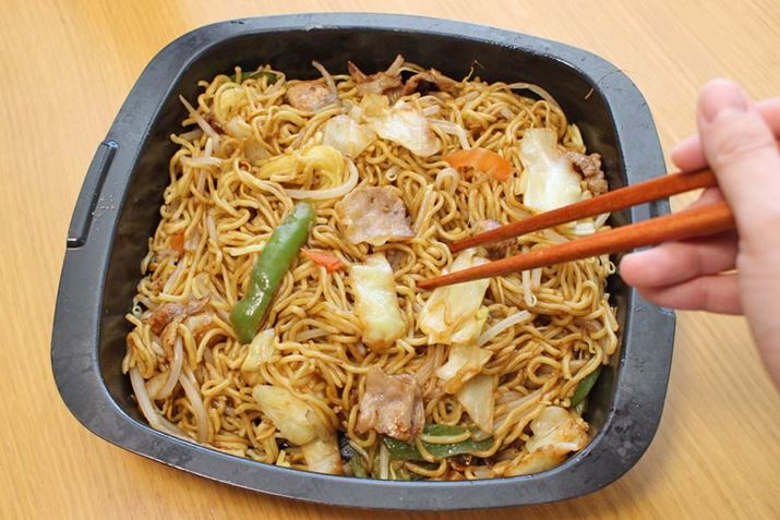 焼きそばは、野菜を下に敷いて、上に麺と肉を乗せたらあとはグリルパンのフタを閉めて加熱するだけ。加熱後にソースをかけて全体を混ぜればできあがり。具の野菜も甘みが出ておいしいです。同じ要領でチャーハンもイケちゃいます