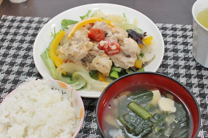 ある日の筆者宅にて、テレワーク中のお昼ごはん。上述の鶏もも肉のグリルをおかずに、ご飯と味噌汁で簡単に済ませました。炊飯器のスイッチを入れ、トースターで鶏もも肉をグリルしている間に、味噌汁を作れるのでとても楽チン。休憩時間にサクサクッと準備できます。そして「おいしい」のが何よりもポイントです
