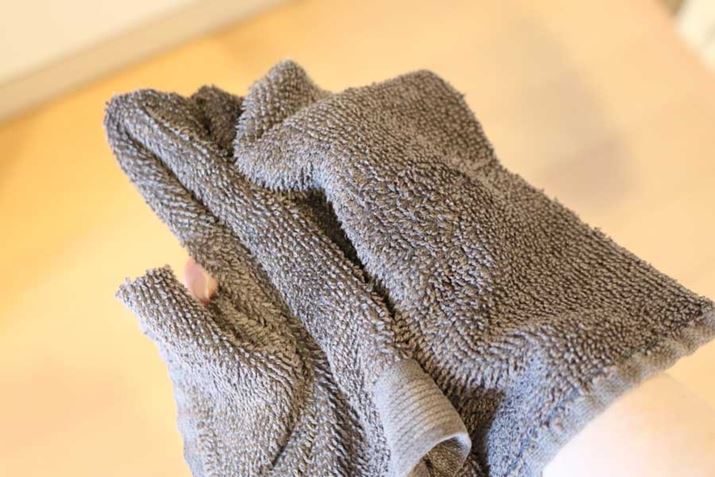 タオルを手に巻きつけて使用します。広い部分は手の全体を、細かい部分は指先を、という風に使い分けましょう