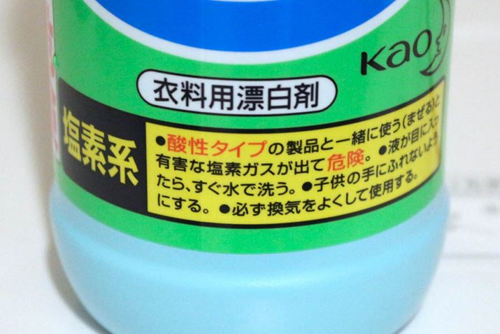 【!!注意!!】塩素系の漂白剤は酸性のもの混ぜると、猛毒の塩素ガスが発生する可能性がありとても危険です。絶対に混ぜないように! また、使用する場合は必ず換気を行ってください