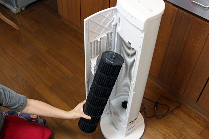 一般的なタワーファンのお手入れは送風口を拭いたり、掃除機でホコリを吸い取る程度。EF-D913Wも通常は、このくらいの手入れで問題ありません