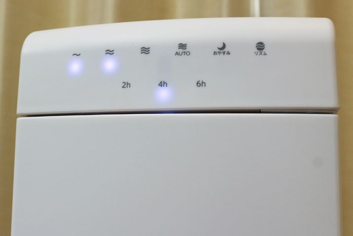設定した運転内容は前面パネルに点灯するランプで確認可能。なお、オフタイマーを設定していない場合は、8時間後に自動で停止します