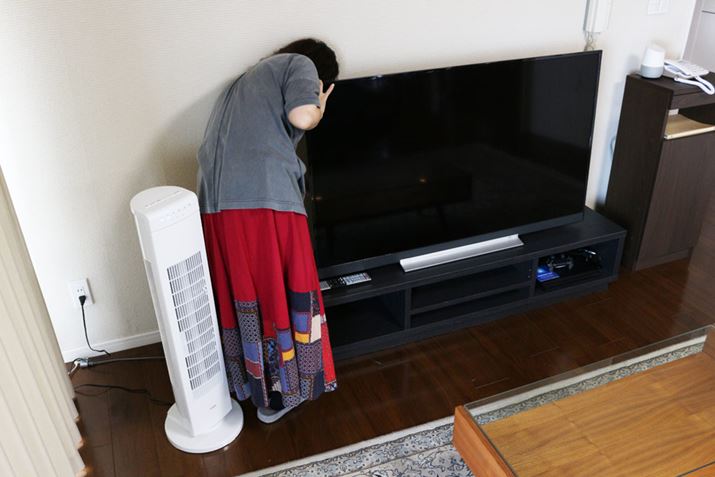 タワーファンはスリムとよく言われますが、ベース部はサイズがあるため、設置面積は一般的な扇風機とそれほど変わらない印象(扇風機のサイズにもよりますが)。ただ、首振り機能をオンにしてもタワーファンの場合、本体や内部がスイングするので、これ以上スペースを占有することはありません(下の動画参照)