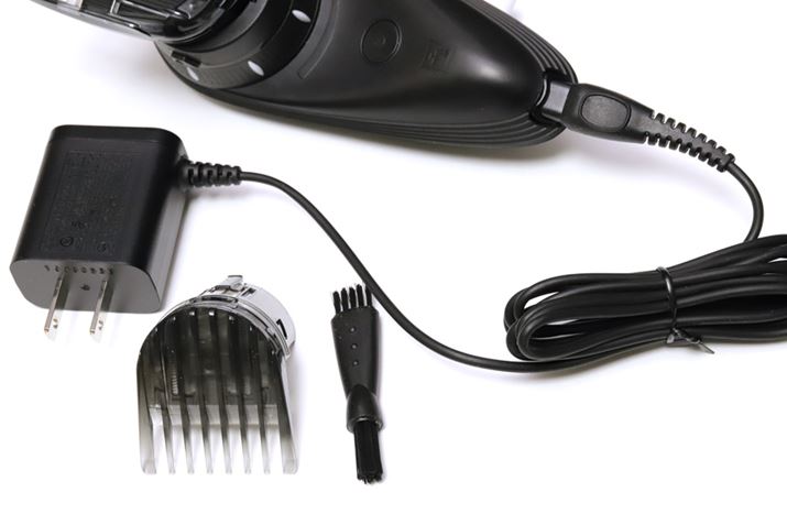 付属品は、先述の細部コームに加え、充電アダプターとクリーニングブラシのみとシンプルな構成です。