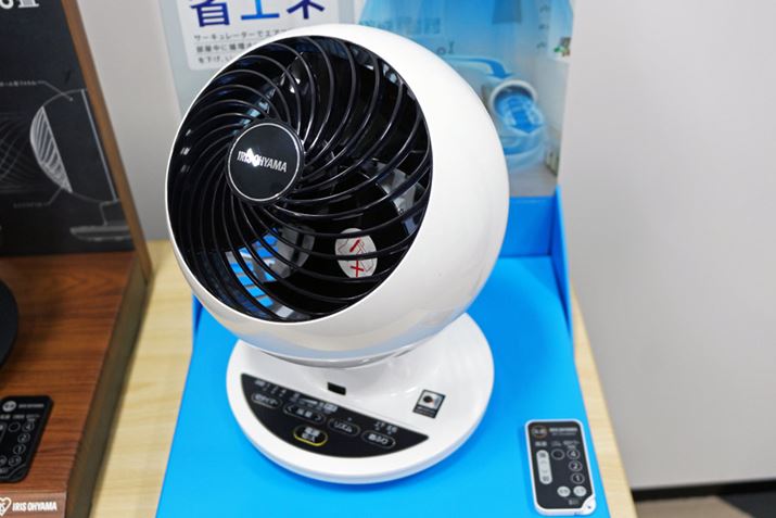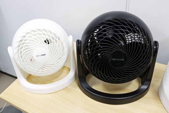 前面がフラットな形状のサーキュレーターが大半の中、2018年にアイリスオーヤマから登場した「サーキュレーターアイ」シリーズはボール型のボディを採用。前パネルを球面にしたほうが風は中心に集まりやすく、風の直進性が高くなるため、より遠くまで風を送れるのだそう。そんなサーキュレーターアイシリーズの基本性能はそのままに、2020年モデルとして、音声操作機能を搭載した「KCF-SCV151T」とデザイン性にこだわった「KCF-SCC151T」がラインアップされました。