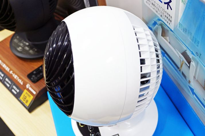 サーキュレーターアイシリーズの特徴は、前パネルを含めて全体的にボール型になっていること。前パネルが平面状のサーキュレーターよりも風が中心に集まり、より風速が大きい風を生み出せるようになります