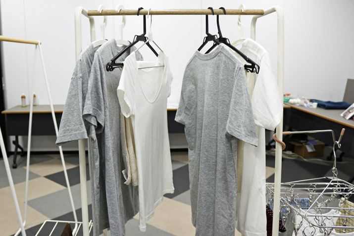 首振り機能をオンにして洗濯物を乾かそうとすると、一般的なサーキュレーターの場合、中央部に風がより当たるため、写真のように吊した洗濯物が端に寄ってしまうなどして均等に乾かないことも。いっぽう、衣類乾燥モードは中央の風を弱く、両端を強めに送風する設定となっているので、洗濯物が一方向に寄らず、まんべんなく乾かすことができるとのこと