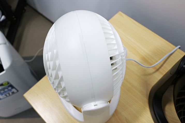 前面パネルは中央に風が集まりやすいドーム状となっていますが、前述のサーキュレーターアイシリーズより丸みは控えめ。その分、設置スペースを取らないのは、ありがたいことでもあります