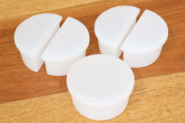 使用できる氷は、専用の製氷カップで作ったもののみ。普通のタイプ1個と、2種類の味のかき氷が作れるハーフサイズが2セット付属します