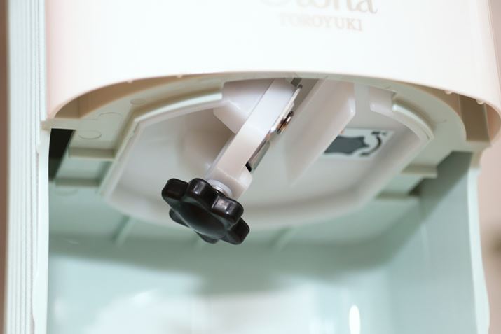 新雪のようなふわふわ食感のかき氷は、細かく削れるよう調節すると成功しやすい印象。運転中でも「刃の高さ調節ネジ」を回して削り具合を変えられるので、うまくいくはずです