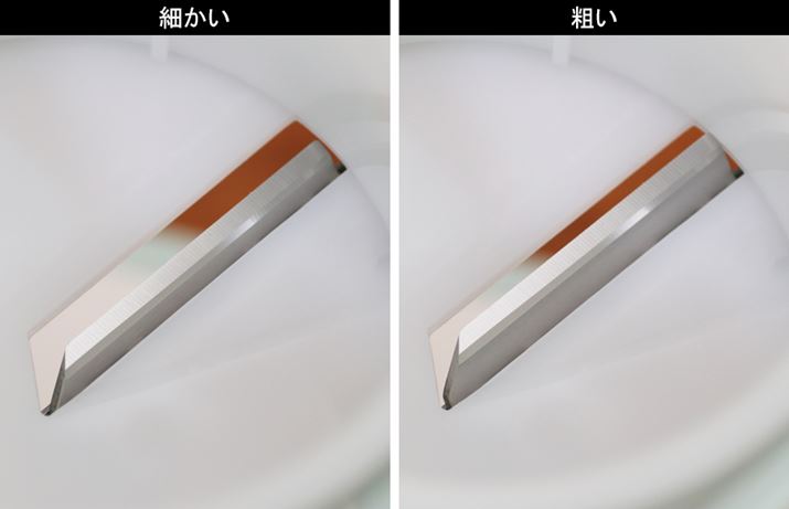 氷ケースに飛び出る刃の長さが短いほど細かく氷が削れます。運転中も刃の高さは調節できるので、削られた氷を見ながら調節しましょう。モーターの回転速度が従来モデルよりゆっくりになった分、運転中の粒度の調節もしやすくなったそうです