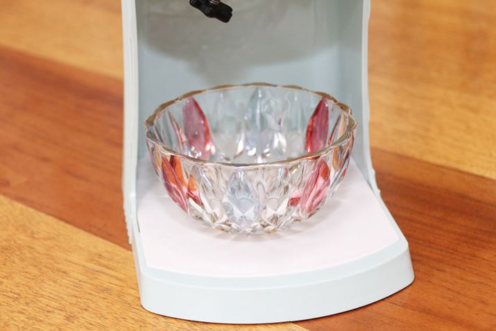 運転を始める前に、氷を受ける器を本体下部にセットしておきましょう。直径11.5cmまでの器を置くことができます