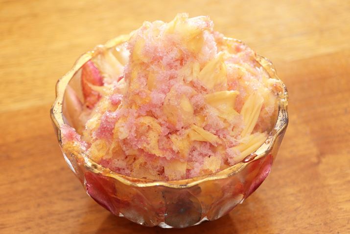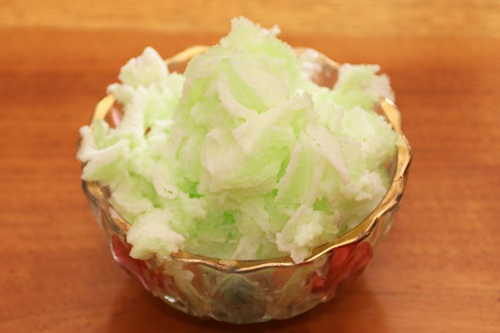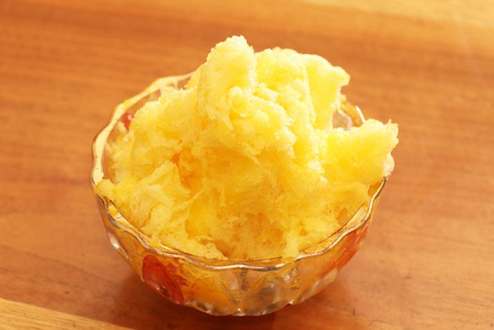 パインに水分が多く含まれているからでしょうか。完成したかき氷は、製氷カップで作った氷を削った時のようにふわっと仕上がりました