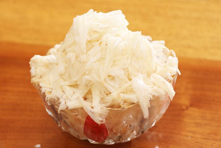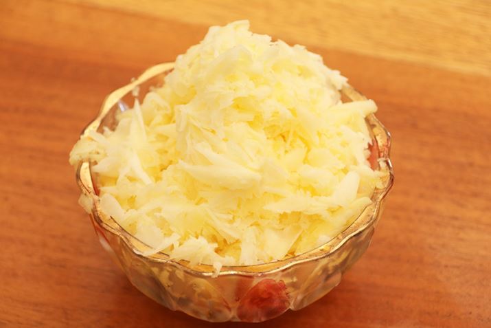 もっとも細かく削れるようにして作ったかき氷は、薄くスライスされています