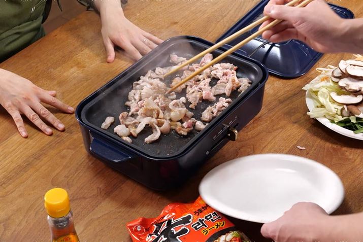 使用している家電は、コンパクトなサイズ感とおしゃれなデザイン、ちょうどいい値ごろ感で大ヒットした「BRUNO コンパクトホットプレート」。今回の動画では、デキるオトコ風カラーのネイビーをチョイス