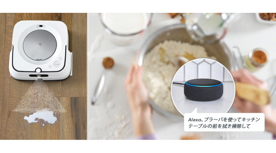 また、ルンバとブラーバはスマートスピーカーとの連携にも対応しており、スマートスピーカーに「掃除して」と話かけるだけで掃除を開始できるのも特徴。もちろん、今回の新機能である清掃ポイントを指定する掃除も、音声操作で行えるんです。