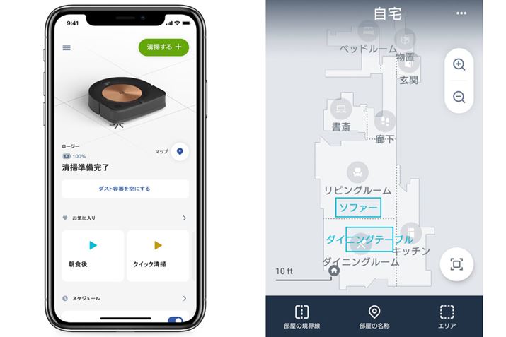 新しくなったアプリ「iRobot HOME」は、ルンバとブラーバの両方を個別に管理可能。お気に入りの清掃プランを組み合わせたり、スケジュール清掃の設定などが行えます。また、ルンバやブラーバが取得したマッピング情報を元に、周囲にある物体が何であるのかを設定して、ルンバやブラーバに認識させることができます