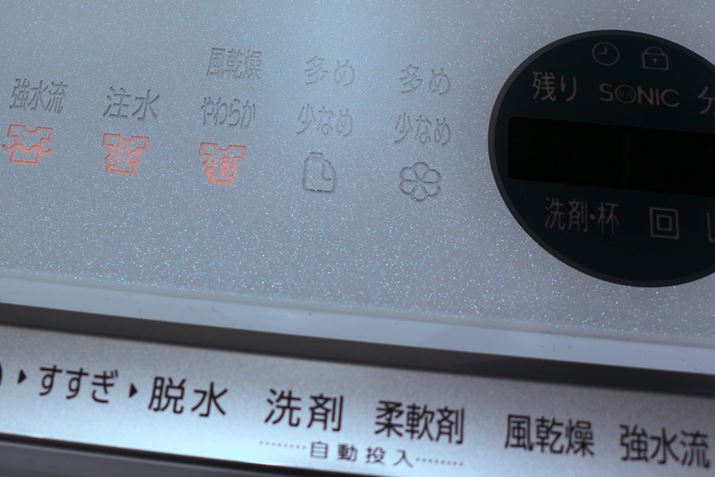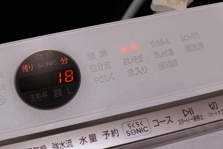 洗濯コースの中には、部分洗いに特化した「SONIC速洗コース」も搭載されています。超音波洗浄(らくらくSONIC)したあと、軽く洗ってすすぐくらいでいいような衣類には、約18分で洗濯できるこのコースを使うといいでしょう