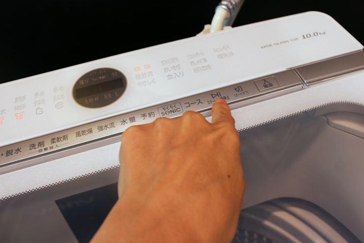 あとは、フタを閉めて、洗濯コースを選んでスタートボタンを押すだけ。液体洗剤・柔軟剤の自動投入機能も装備されているので、洗剤を入れる必要もありません