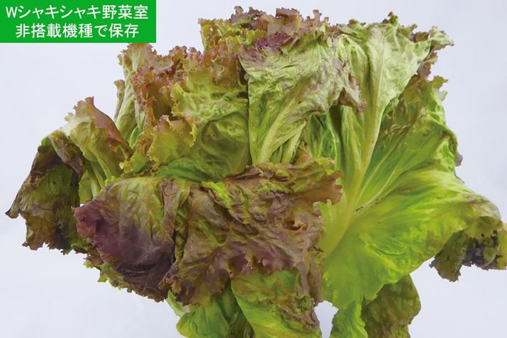 Wシャキシャキ野菜室を搭載したMEXタイプと非搭載の従来製品でサニーレタスを1週間保存した比較。MEXタイプに入れておいたほうは採れたてかと思うほどみずみずしい!