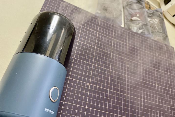 最後に、おひとりさまのパーソナル加湿器選びでチェックするべきポイントや使い方の確認も兼ねて、筆者がこの冬に向けて導入したこの製品の特徴や仕様を見ていきましょう。リズム時計工業株式会社改め、リズム株式会社のパーソナル超音波式加湿器「MIST100」です。ここまでの写真例にもガンガン出してきたのでいまさら感ありますが!