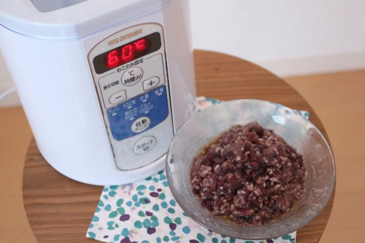 ちなみに、今回使用したアイリスオーヤマの電気圧力鍋「PC-MA2」は低温調理モードも搭載されているので、ヨーグルトメーカーに移し替えず、このまま保温してもOKです! なのになぜヨーグルトメーカーで調理するかというと、筆者宅では、炊飯から簡単なあたためまで、電気圧力鍋が1日中フル稼働しているから。発酵あずきは8時間と長時間の保温が必要なので、その間に電気圧力鍋がまったく使えないのは困る……というわけで今回は、ヨーグルトメーカーにまかせることにしました。