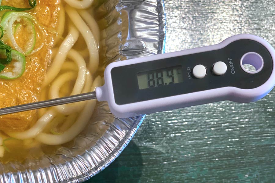 一般的に、温かい食べ物は60〜70℃ぐらいがおいしく食べられる温度と言われています。つまり、最後までちゃんとアツアツの温度を保てていたことがわかりますね。これはすごくうれしい!