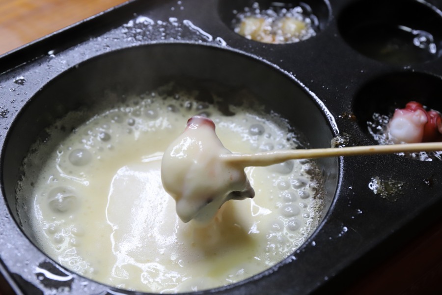 具材は、たこ焼きの内部で加熱することになるので、心配なら事前に火を通しておくか、小ぶりに切っておくといいでしょう。