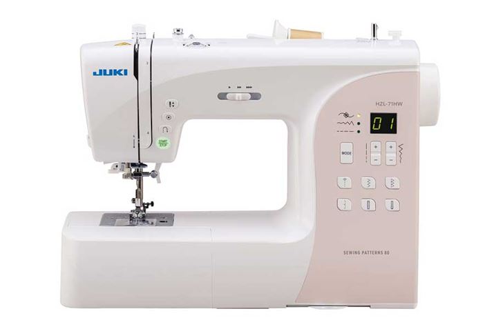 低価格ながら実用的な機能を備えたモデル。レバー操作で簡単に糸通しができるようになっており、糸調子はダイヤル操作で調節できます。コンパクトながら十分なソーイングスペースがあり、フリーアームも使えるので、ズボンの裾上げなどがしやすくなっています。縫いパターンは6種類搭載しており、ボタンホール縫いにも対応。フットコントローラーも標準で装備しています。
