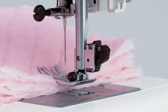カーテンなどの大きな布を縫う場合は、ミシン本体に広いソーイングスペースがあると作業が効率的。また、針板の送り歯の枚数が多いと布送りが楽に行えるので、こちらも合わせてチェックしておくといいでしょう。
