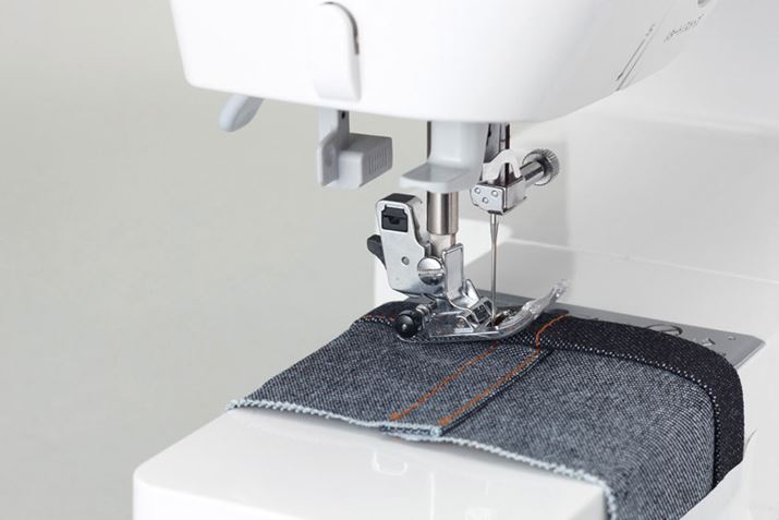 内蔵されたマイコンが、モーターの上下運動のみを制御するミシンです。コンピューターミシンと同様に、低速時も強いパワーを維持できるので、小物や洋服などの薄物から、ジーンズの裾上げなど厚物縫いまで対応できます。