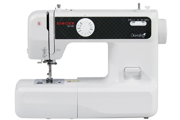 通園・通学グッズへの名前入れなどがしやすい多機能モデル。上糸の糸通しは2ステップのレバー操作で行えて、下糸をボビンに巻き付けて台座にセットし、スタートボタンを押すだけで縫い始められます。縫いパターンは、ひらがなやカタカナ、英数字、年・組など、よく使う文字と40種類の模様、ボタン穴かがりなどを搭載。7枚送り歯を備えており、布送りもスムーズです。