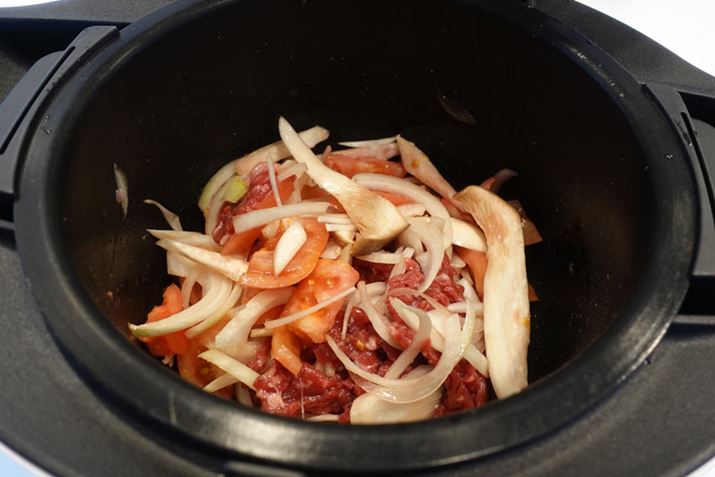 こちらが、コミュニティーサイトのホットクック部に投稿されている「牛肉トマト丼」である