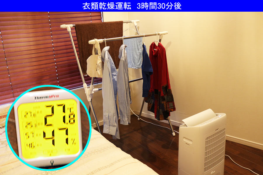 8畳くらいの部屋(寝室)でCV-NH140を稼働し、衣類乾燥運転を行います